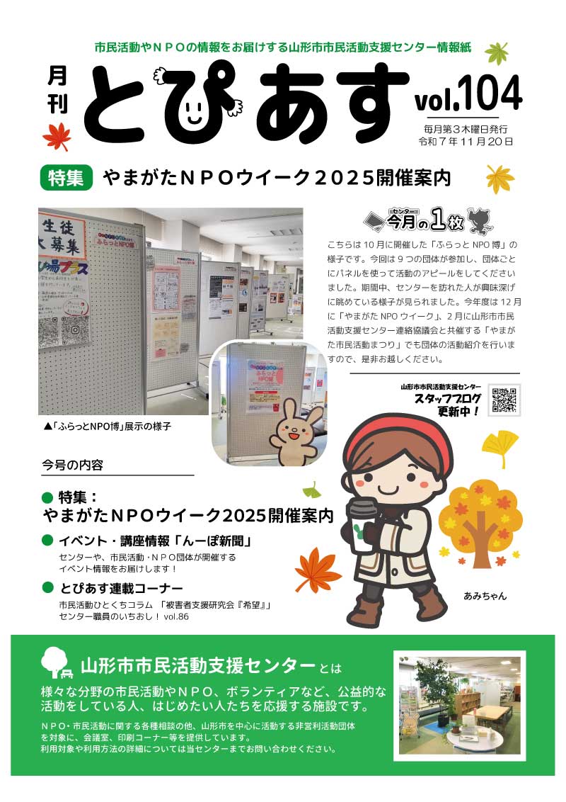 情報紙「山形市市民活動支援センターだより とぴあす」vol.104