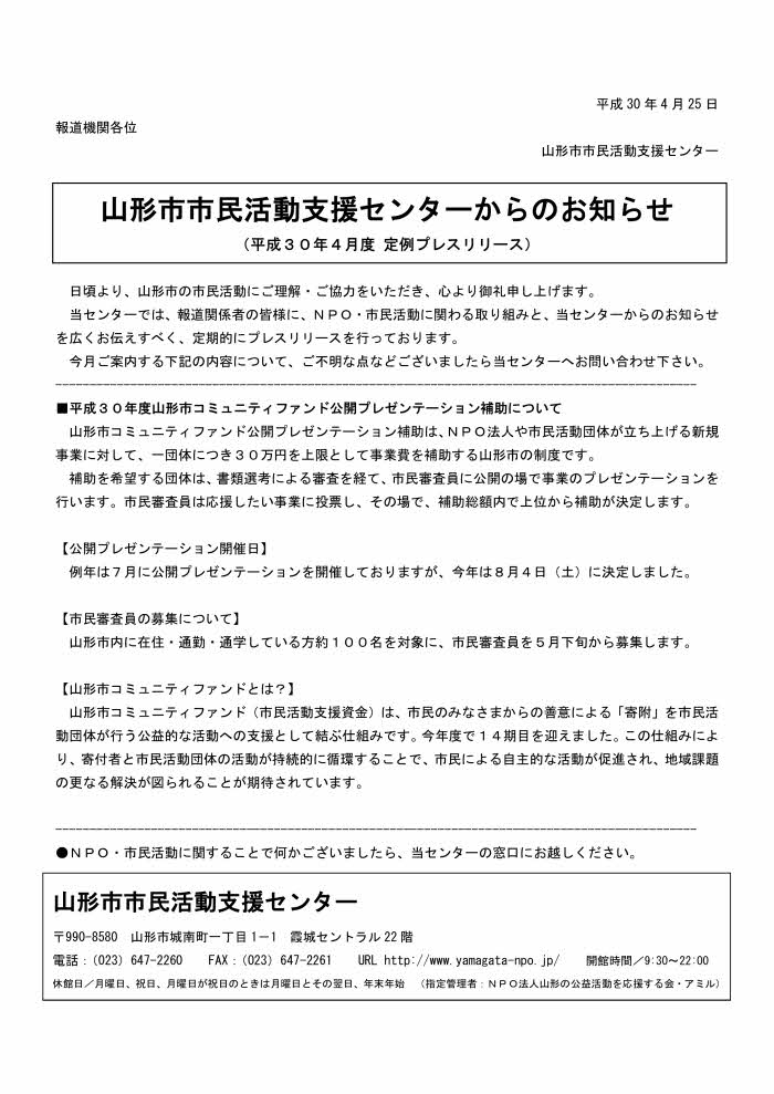 「山形市市民活動支援センター連絡協議会」のご紹介