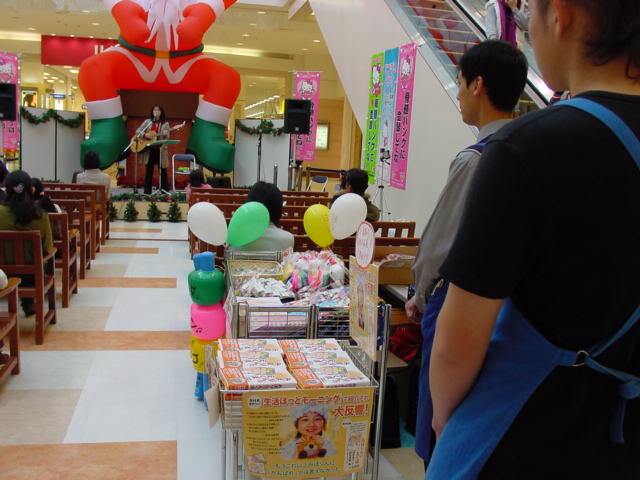 当日の会場では客席が設けられ、そこに多い時は数十人の人々が、座り又は立ち見などでミニライブを観賞していて、たくさんの買い物客が行き交う中、人への熱い思いと日常を歌い上げた丹波さんのライブと、悲しみを乗り越えて、がんばろうとしている『みぽりん』のお母さんのミニトークに共感しているようでした。