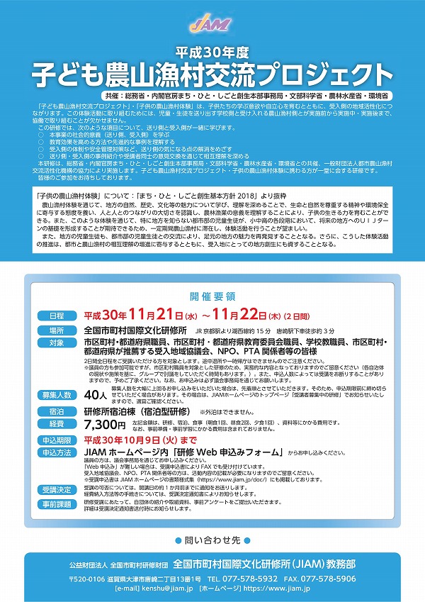 « 前の記事へ 次の記事へ » JIAM主催研修「子ども農山漁村交流プロジェクト」 2018年9月16日 center チラシはこちらからダウンロードできます(PDFデータ) « 前の記事へ 次の記事へ »