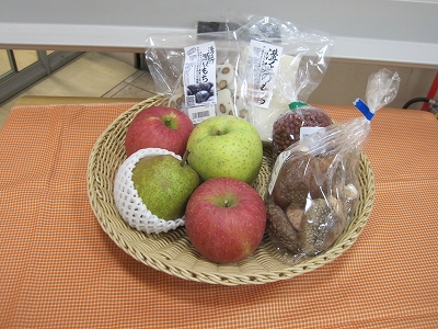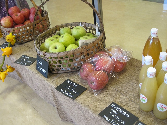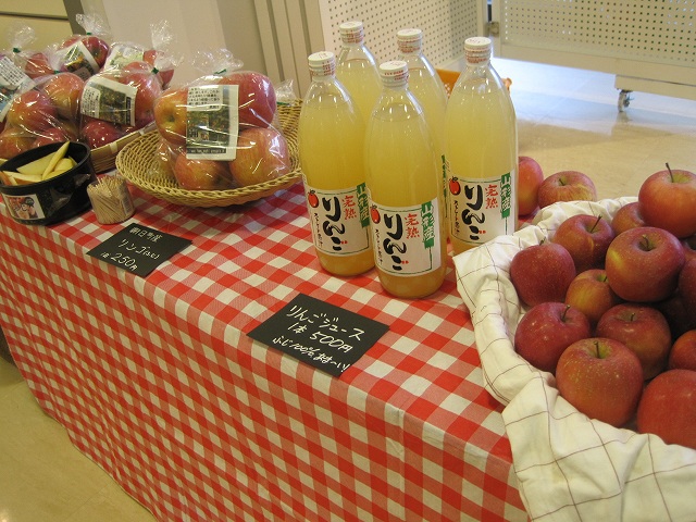 また、山形の秋は、ラフランスやりんごが旬で美味しい季節。朝日町や河北町、米沢市など県内の様々な地域のりんごやラフランスが販売されていました。他にも、柿や生しいたけ、秘伝豆などの大豆、りんごジュースなどの加工品が並んでいました。私もりんごとラフランスを購入しましたが、りんごはしゃきしゃきで、ラフランスはちょうど食べ頃でとても甘かったです。