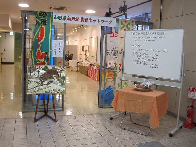 山形県内で新しく農家として農業に挑戦している若い皆さんで結成した、山形県新規就農者ネットワーク。平成22年11月19日~30日まで、山形市香澄町山交ビル1階の山形銀行コミュニティプラザで、「山形県新規就農者ネットワーク大収穫祭」が開催されましたので、その様子をご紹介します。