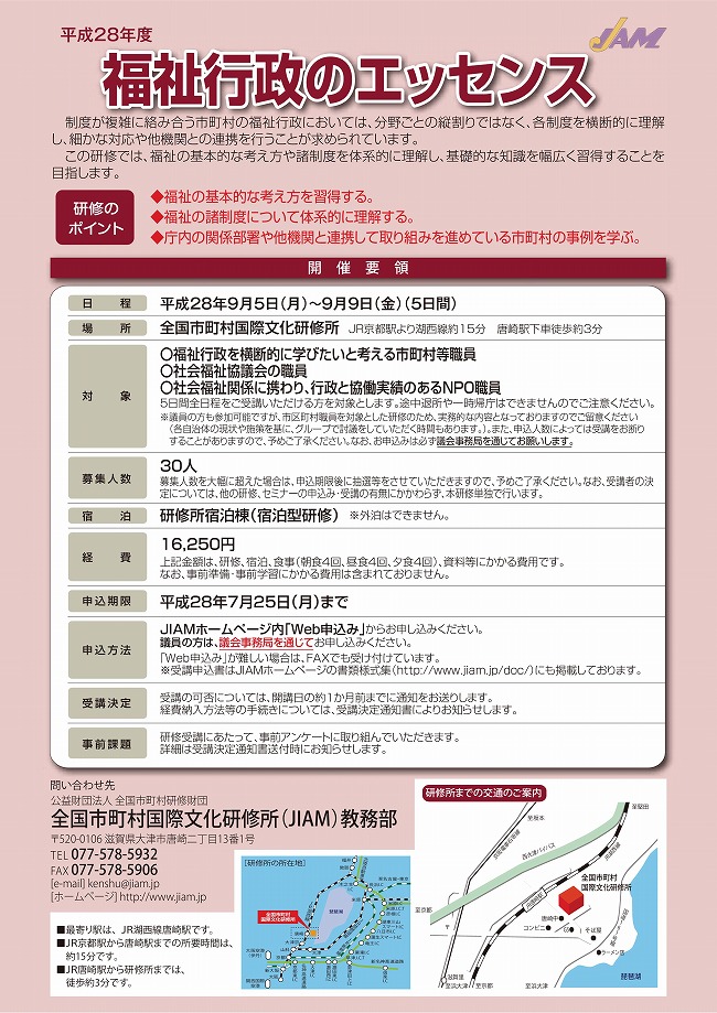« 前の記事へ 次の記事へ » JIAM主催研修「福祉行政のエッセンス」 2016年7月5日 center チラシはこちらからダウンロードできます(PDFデータ) リンク: JIAM研修案内 福祉行政のエッセンス « 前の記事へ 次の記事へ »