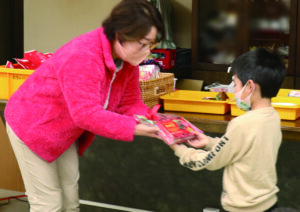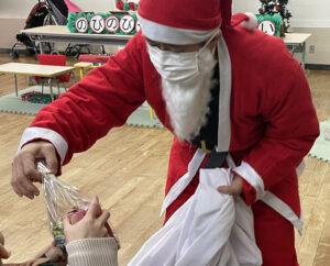 今回も来所してくれた子どもたちにクリスマスプレゼントとしてお菓子の詰め合わせをお渡ししたそうです。家に持ち帰って家族といっしょに食べてねと声をかけると、お菓子を受け取った子どもたちは皆嬉しそうに笑顔になって帰っていったそうです。