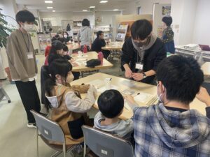 令和6年3月23日(土)に、親子を対象としたサイエンスカフェを開催しました。今回は、司会進行を、センタースタッフやDigetal Design Lab サークルをはじめとした山形大学の学生スタッフ4名が務めました。多くの申し込みがありましたが、3Dプリンターの台数の関係で人数を制限し、5組13名に参加してもらい開催しました。場所は、ふらっとで行い学生スタッフが進行を務めました。