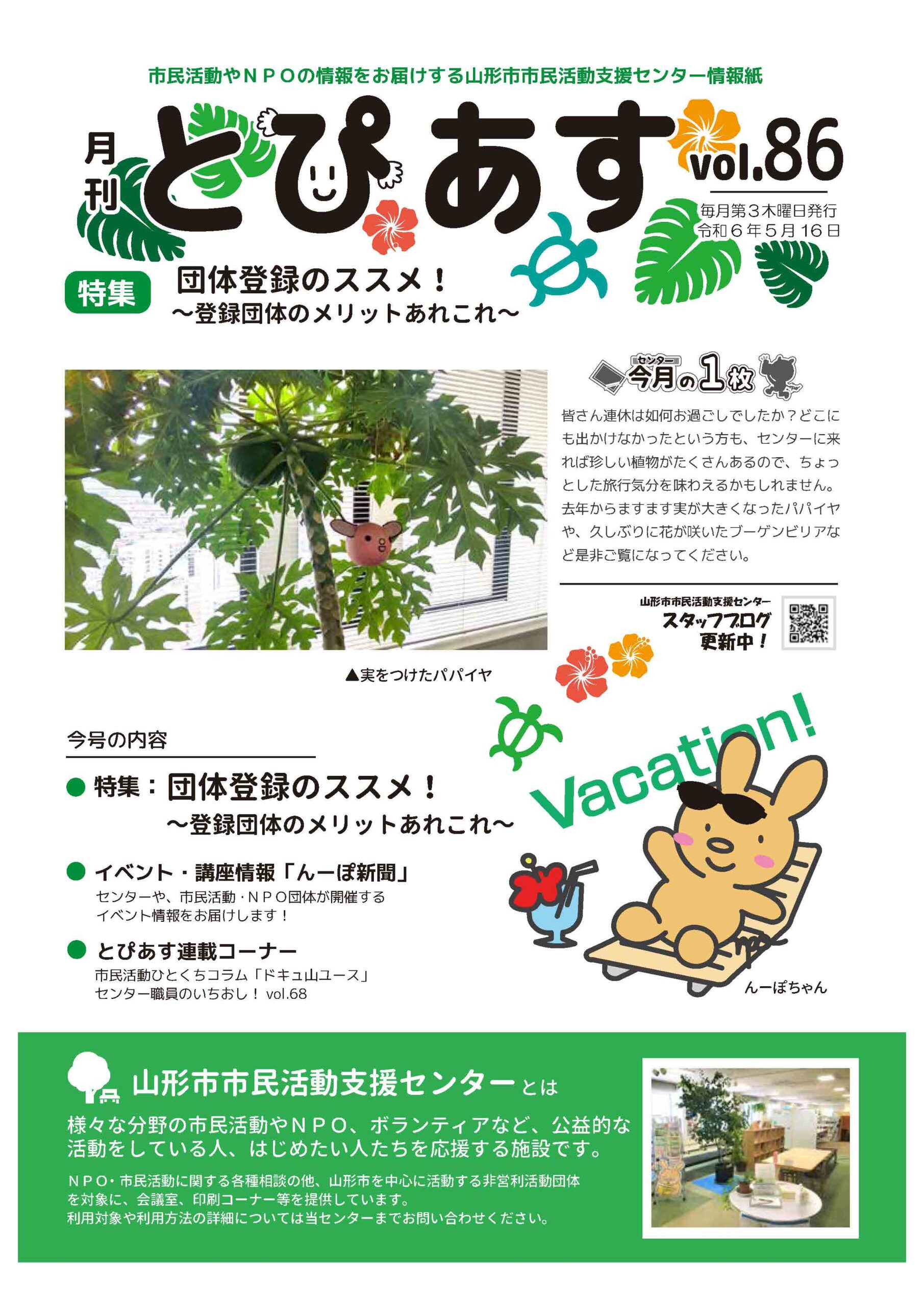 情報紙「山形市市民活動支援センターだより とぴあす」vol.86