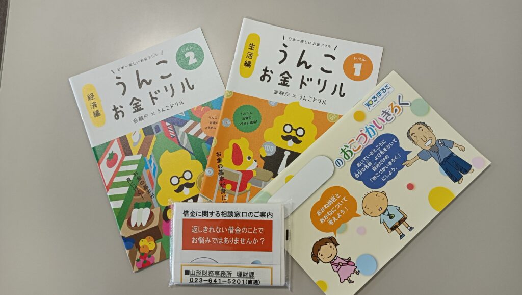 帰りの際には山形財務事務所さんより、子どもたちに「うんこお金ドリル」をプレゼントしていただき、多くのお子さんが「楽しかった」「おつかいいってみたくなった」と笑顔で帰って行きました。親御さんからも、「子どもにお金の大切さや使い方を教えるのはなかなか難しいが、わかりやすく教えてもらった」「これからのお金の使い方を自分で決めてお金の大事さを学んで、上手に使ってほしい」「自分のお金の使い方を次は考えてみたいというので、おこづかい少し考えてみようと思います」などの感想を頂きました。