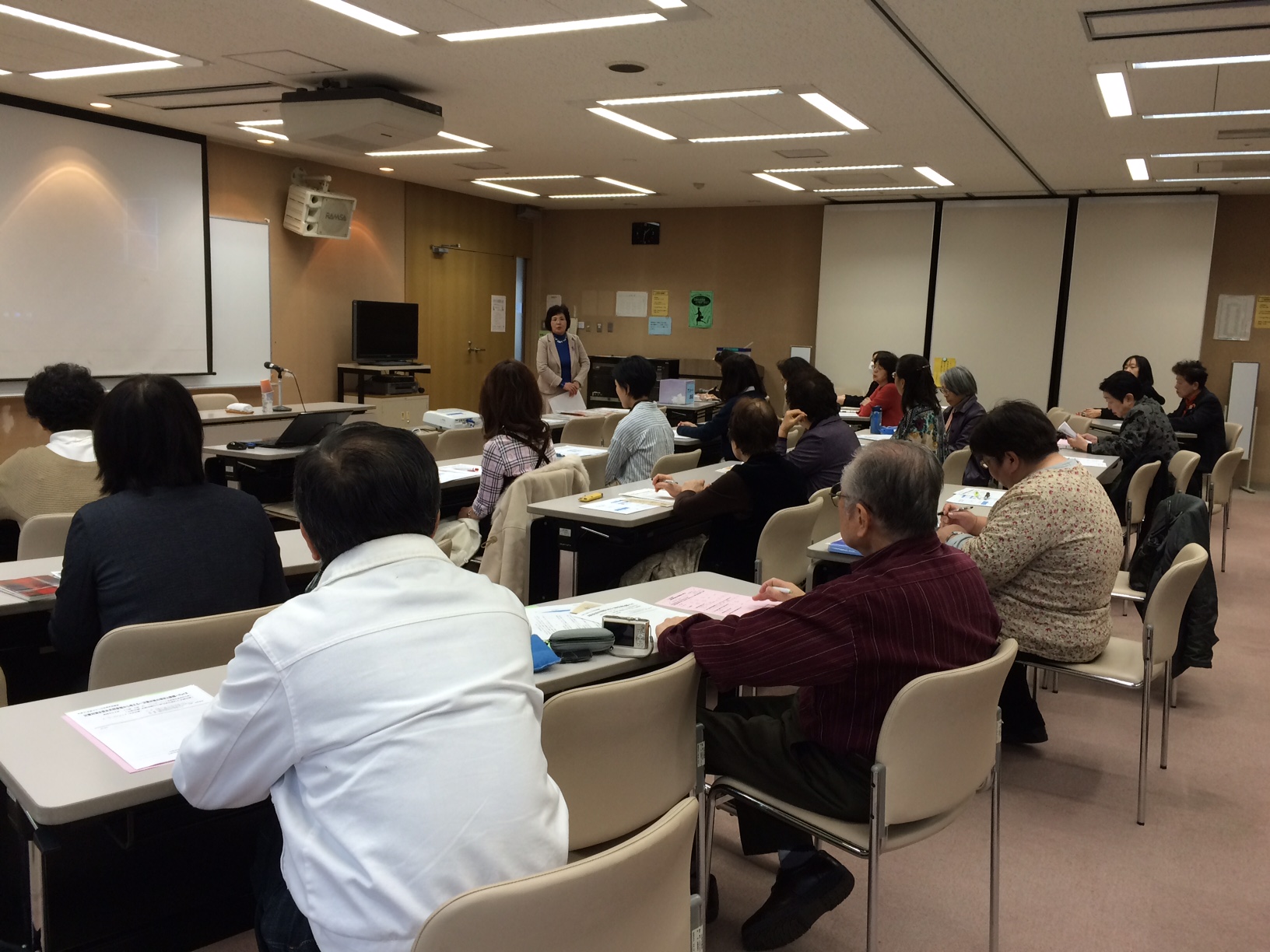 第2部は、主催者のやまがた女性21の方がファシリテーターとなり、参加者全員でワークショップを行いました。テーブル前後2台を合わせてグループを作り、①これまでどんな災害の取り組みをしてきたか、②これからどんなことをやっていきたいかを話し合いました。