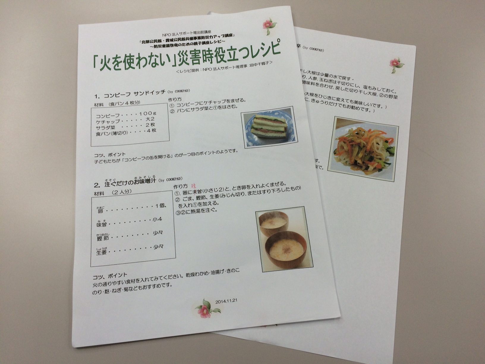 話し合いの前段で、やまがた女性21の方から、昨年度市へ提言した内容や、団体としてアンケート調査をしてきたこと、私の「防災力ノート」を作ったこと、火を使わないレシピ集を作成したこと等が説明されました。