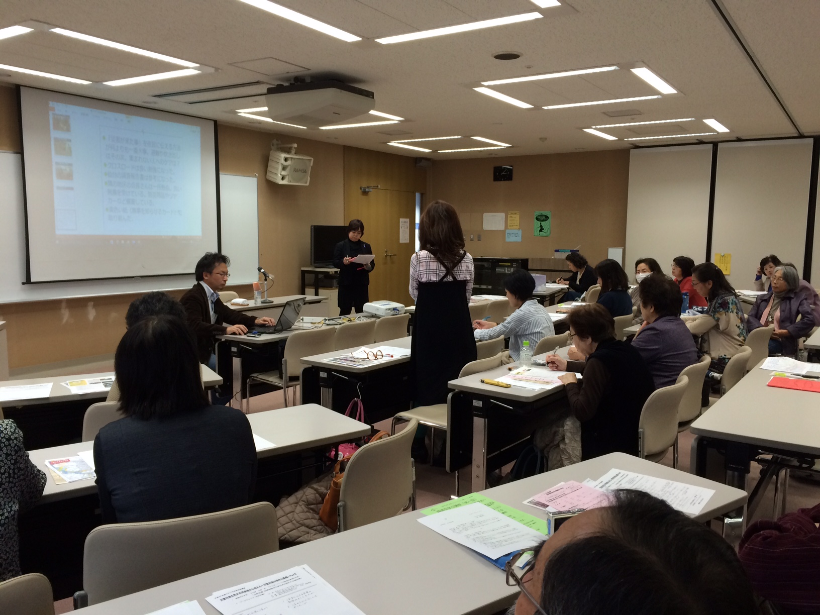それぞれのグループで話し合った結果、貯蔵する食品には賞味期限や消費期限があること、オール電化の住宅が増えていること、仙台市では都市ガスは破綻したのでエネルギーは一本化しないほうがいいこと、震災に備えた訓練時に避難所となる学校の鍵がなくて入れなかったこと、町内会の防災訓練に参加したが住民の方々があまり参加しないこと、無事を知らせる黄色い紙の活動に取り組んだこと、雨水処理が大変で泥かきなどはしていないことが考えられること、相談相手が男性ばかりで女性特有の授乳や生理用品に関する相談ができにくいこと等、多くの課題が出されました。