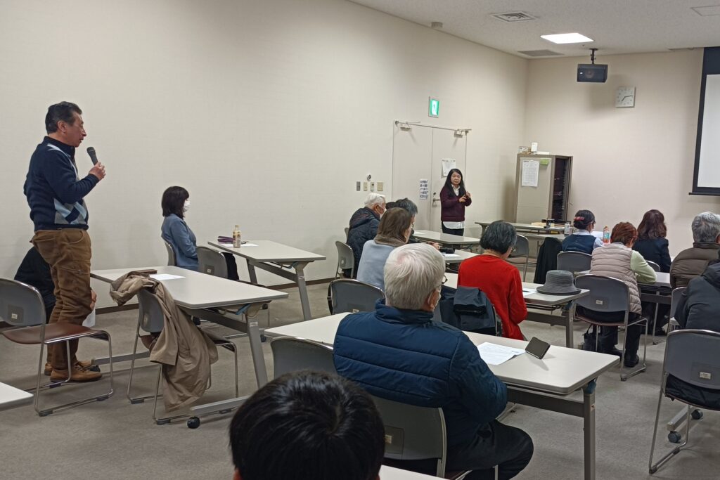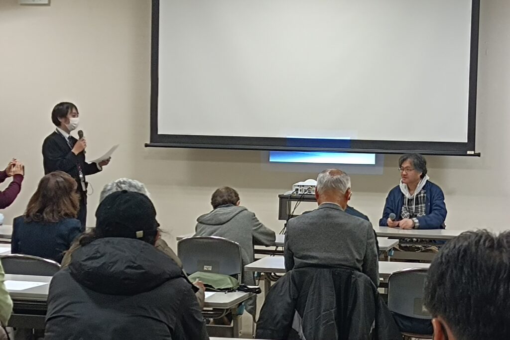 本講座は登録団体の活動を広く知っていただくため、登録団体との共同企画講座となっており、「映画で男女共同参画を考える会」の皆さんにご協力いただき、岡崎孝監督作品「平成から令和への道すがら、わたしが見たものは…」を上映し、上映終了後監督との質疑応答を実施しています。当日は総勢24名とたくさんの方に参加いただきました。