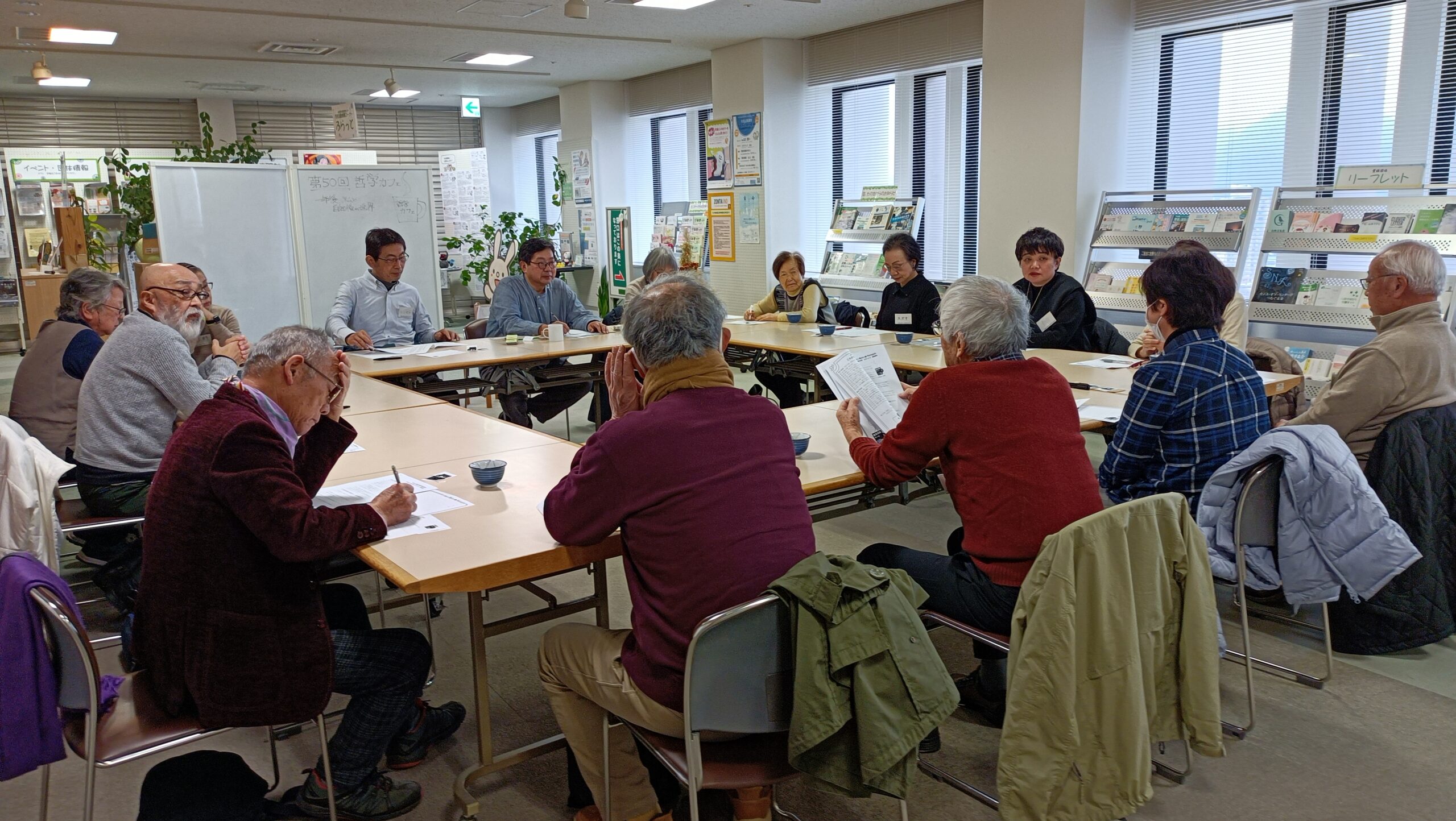 2021年より始まったこの哲学カフェも、今回で50回目を迎えました。今回は定員いっぱいの15名での開催。毎回参加者が少なくて悩んでいた最初の頃と比べると感慨ひとしおです。