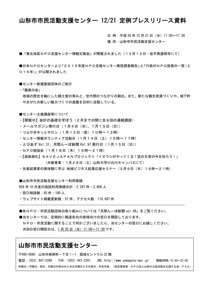 « 前の記事へ 次の記事へ » 2016.12.21-定例プレスリリース資料(12月分) 2017年7月1日 center (下記をクリックするとPDFがダウンロードできます) « 前の記事へ 次の記事へ »