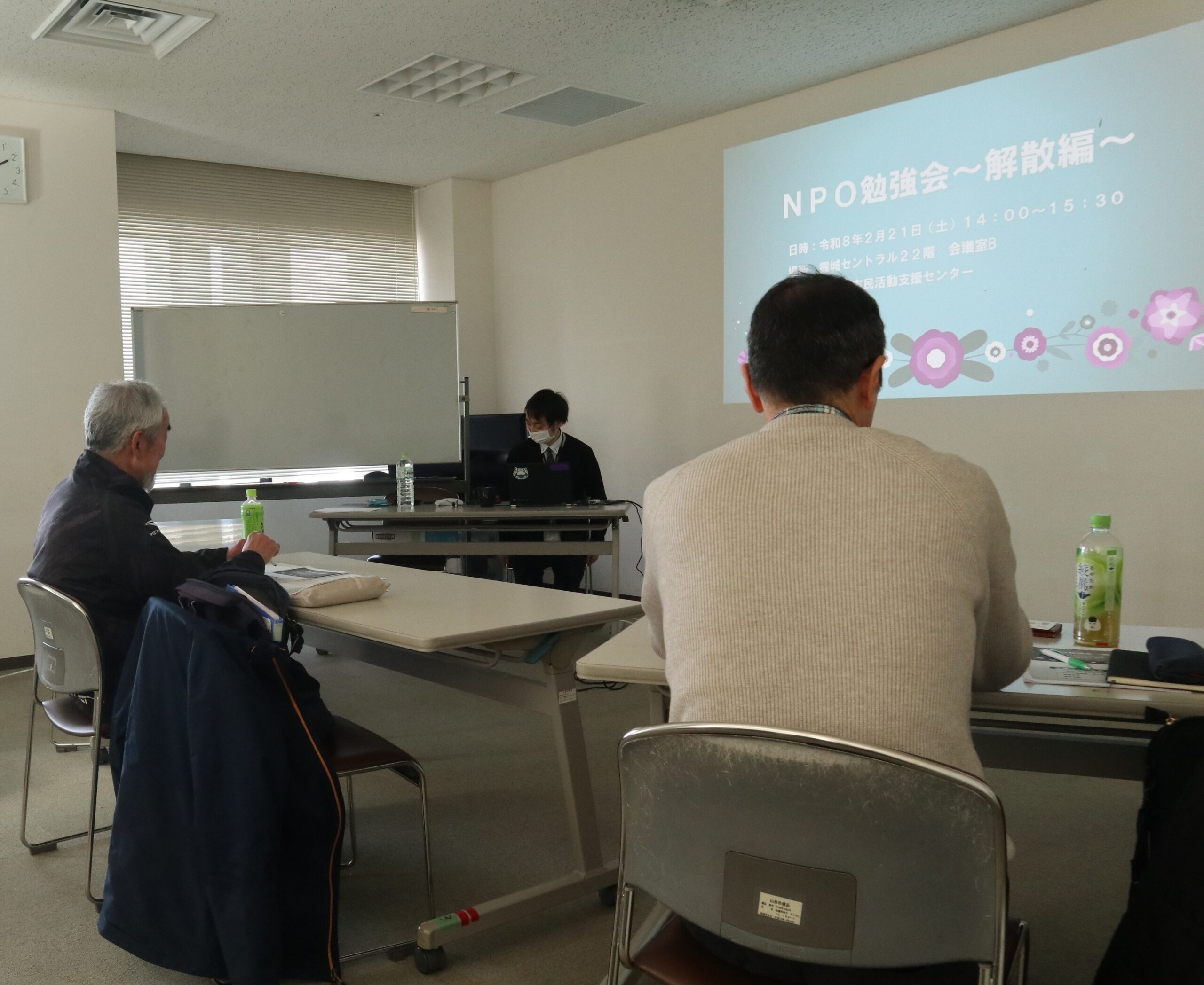 令和8年2月21日(土)に、NPO法人の解散を具体的に考えている、もしくは将来的に解散を検討しているという方などを対象にした勉強会を開催しました。