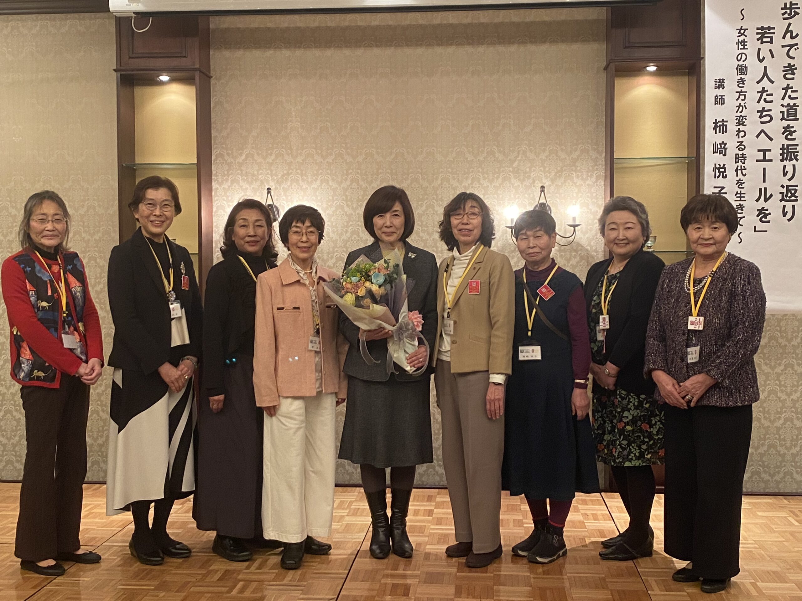 国際ゾンタ山形ゾンタクラブでは毎年山形で活躍されている女性をお呼びして記念講演会を開催しています。今回の記念講演会は「歩んできた道を振り返り 若い人たちへエールを」~女性の働き方が変わる時代を生きて~と題し、山形大学ダイバーシティ推進室准教授の柿﨑悦子先生を講師に迎えて開催されました。