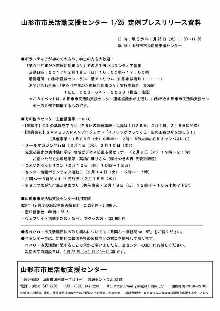 « 前の記事へ 次の記事へ » 2017.1.25-定例プレスリリース資料(1月分) 2017年7月4日 center (下記をクリックするとPDFがダウンロードできます) « 前の記事へ 次の記事へ »