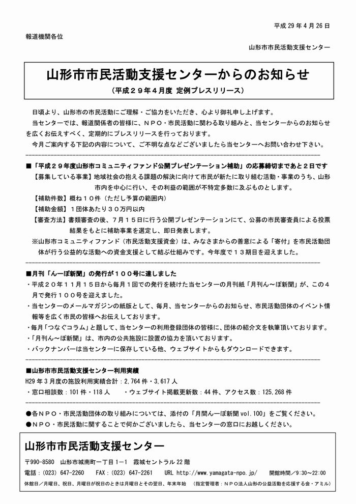 « 前の記事へ 次の記事へ » 2017.4.26-定例プレスリリース資料(4月分) 2017年7月4日 center (下記をクリックするとPDFがダウンロードできます) « 前の記事へ 次の記事へ »