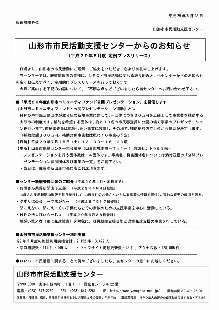 « 前の記事へ 次の記事へ » 2017.6.28-定例プレスリリース資料(6月分) 2017年7月4日 center (下記をクリックするとPDFがダウンロードできます) « 前の記事へ 次の記事へ »