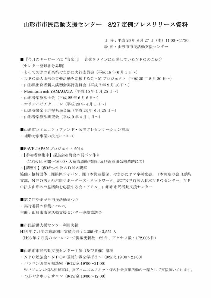 « 前の記事へ 次の記事へ » 2014.8.27-定例プレスリリース資料(8月分) 2014年8月28日 center (下記をクリックするとPDFがダウンロードできます) « 前の記事へ 次の記事へ »