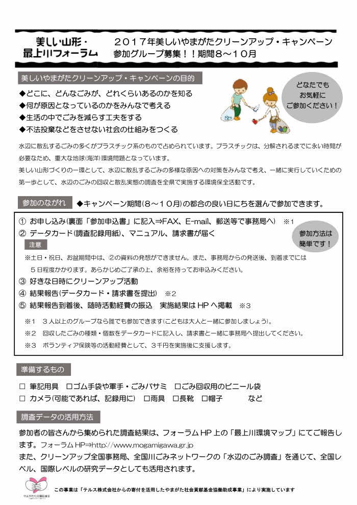 « 前の記事へ 次の記事へ » 2017年美しいやまがたクリーンアップ・キャンペーン 参加グループ募集!! 2017年7月25日 center チラシはこちらからダウンロードできます(PDFデータ) 公式WEBサイトはこちらからご覧ください(リンク) « 前の記事へ 次の記事へ »