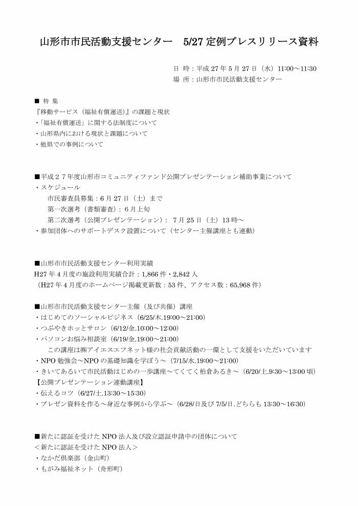 « 前の記事へ 次の記事へ » 2015.5.27-定例プレスリリース資料(5月分) 2015年5月29日 center (下記をクリックするとPDFがダウンロードできます) « 前の記事へ 次の記事へ »