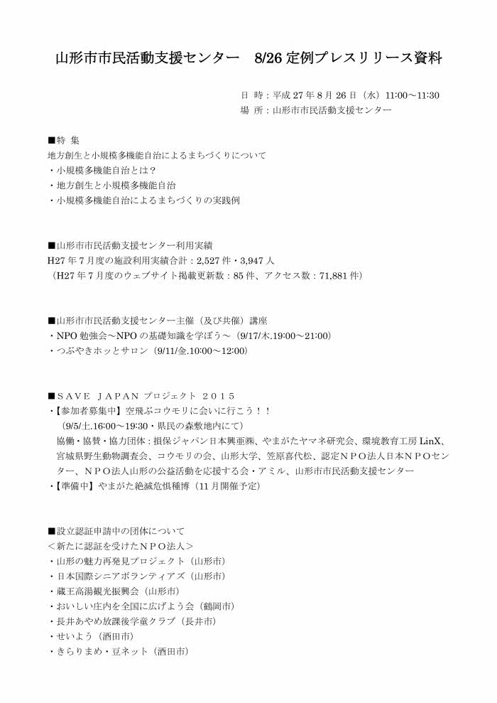 « 前の記事へ 次の記事へ » 2015.8.26-定例プレスリリース資料(8月分) 2015年8月28日 center (下記をクリックするとPDFがダウンロードできます) « 前の記事へ 次の記事へ »