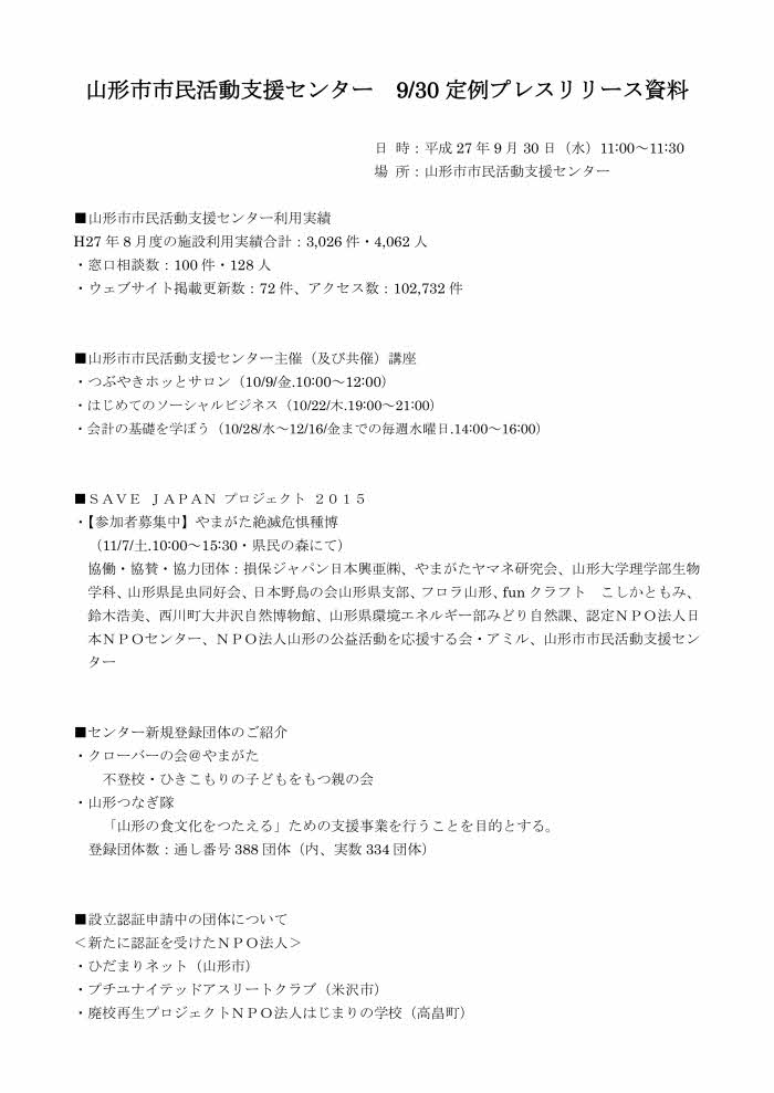 « 前の記事へ 次の記事へ » 2015.9.30-定例プレスリリース資料(9月分) 2015年10月1日 center (下記をクリックするとPDFがダウンロードできます) « 前の記事へ 次の記事へ »