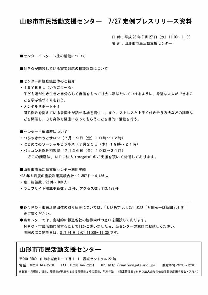 « 前の記事へ 次の記事へ » 2016.7.27-定例プレスリリース資料(7月分) 2016年8月3日 center (下記をクリックするとPDFがダウンロードできます) « 前の記事へ 次の記事へ »
