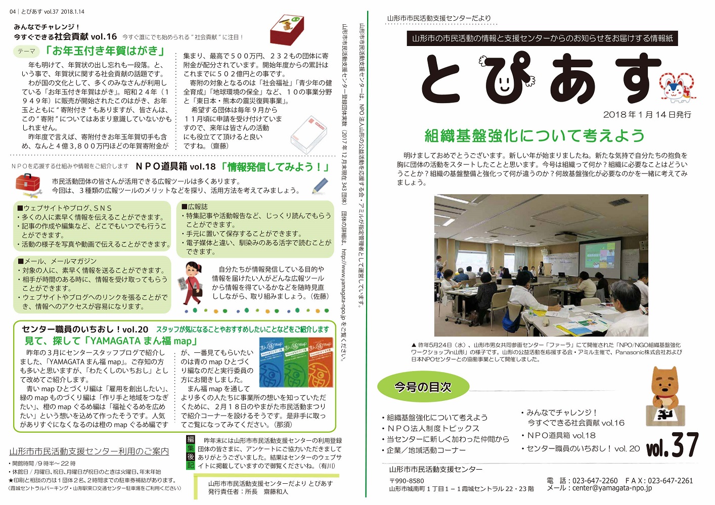 「山形市市民活動支援センターだより」は、当センターの全登録団体の皆様に送付している他、