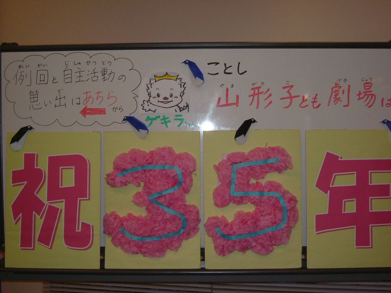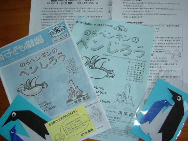 今回は第184回鑑賞例会「のらペンギンのぺんじろう」にお邪魔して来ました。九州からお呼びしたNPO法人劇団道化さんが子どもたちの目の前で繰広げる世界を、子どもたちは目をキラキラさせ、ニコニコしながら見入っていました。今日のテーマは「友情」。友達はいい時はいいけれど、すぐケンカしてしまうから「わずらわしい」。ほんとうに友達っていいものなの?大人も大笑いしたり、ホロッとしたり、劇に引き込まれてしまいました。