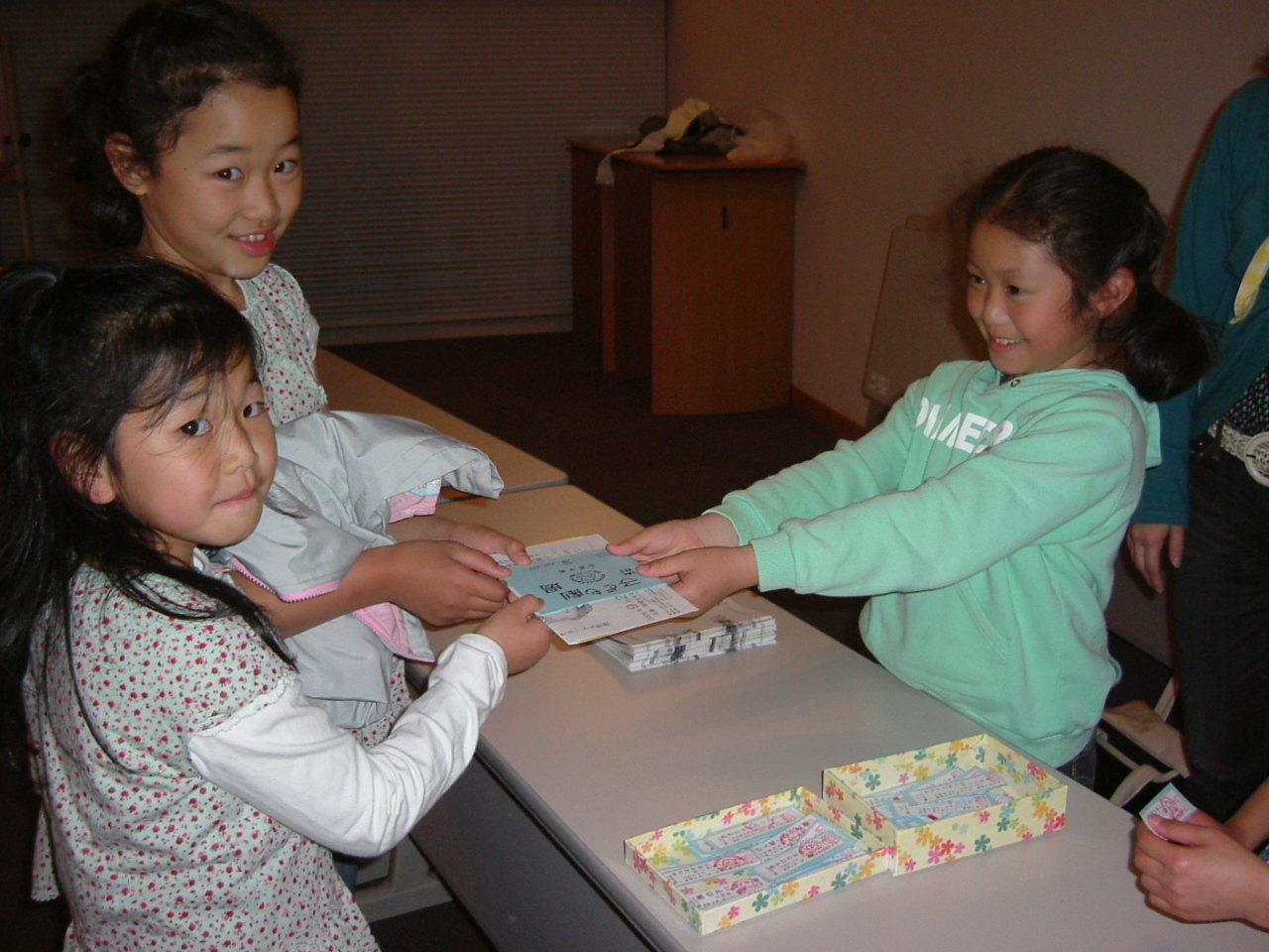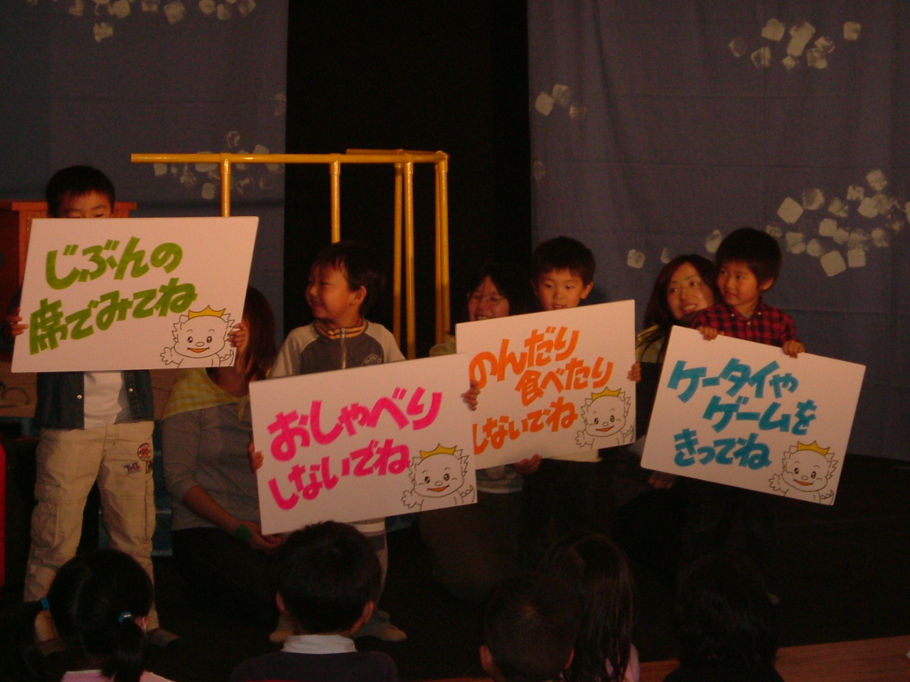 ただ劇を鑑賞するだけでなく、当番の子どもたちは切符のもぎりや4つのお約束の係りなどそれぞれ自分の役目を担当していました。親も準備や片付けに参加。日頃見ることのできない劇団のバックヤードが見られたり、劇団の方とお話できたりと、劇を楽しむだけでない楽しさもあります。