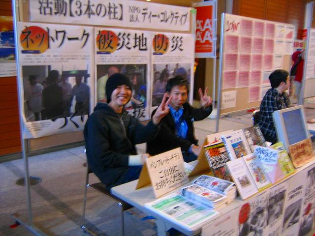 展示ブースは、約一坪のスペースに展示パネル(横180cm幅)と、机を使って、自分たちの団体の活動を紹介。ポスターや活動紹介資料をパネルに掲示したり、机にチラシを置いたりしてPRしました。