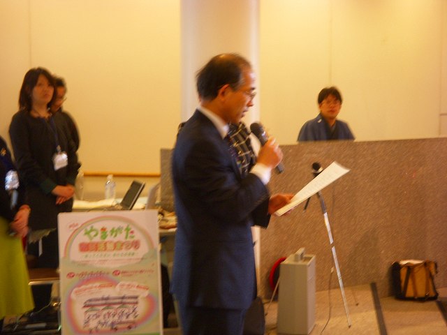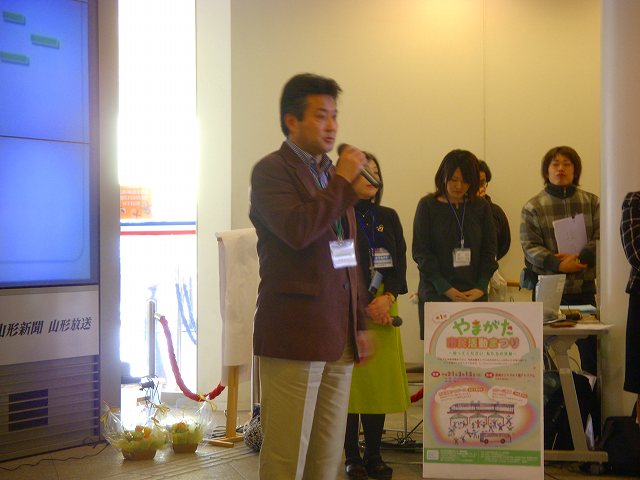 オープニングは12:30から。山形市長(井上課長代読)、山形市企画調整課井上課長、山形市市民活動支援センター所長齋藤の祝辞がありました。