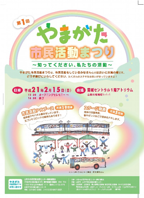 今、個性や能力を生かし、共にみとめ合い、支え合い、生きがいをもって共生していける地域社会づくりが必要となっています。地域のため社会のためにと活動している団体を、市民の方に知ってもらい、理解してもらい、交流したことで、今後の市民活動が広がりをみせ「暮らしやすい山形づくり」につながっていけばいいと感じた1日でした。