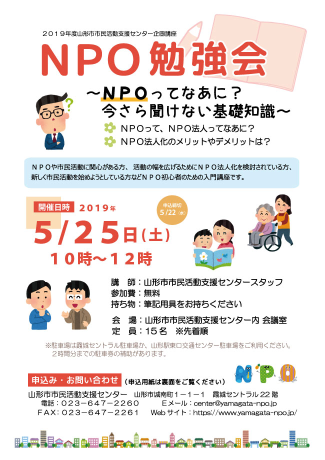 « すべてのイベント このイベントは終了しました。 NPO勉強会 2019年5月25日10:00 - 12:00 無料 « パソコンお悩み相談室 ママとパパと赤ちゃんのためのベビーボンディング ~ベビーマッサージと手遊び歌で~ » チラシ・申込書のデータはこちらからダウンロードできます(PDF形式)市民 + Google カレンダー+ iCal エクスポート 詳細 日付: 2019年5月25日 時間: 10:00 - 12:00 参加費: 無料 イベントカテゴリー: センター主催 主催者 山形市市民活動支援センター 電話番号: 023-647-2260 Web サイト: https://www.yamagata-npo.jp/ 会場 山形市市民活動支援センター 山形市城南町1-1-1 霞城セントラル22F + Google マップ 電話番号: 023-647-2260 Web サイト: https://www.yamagata-npo.jp/