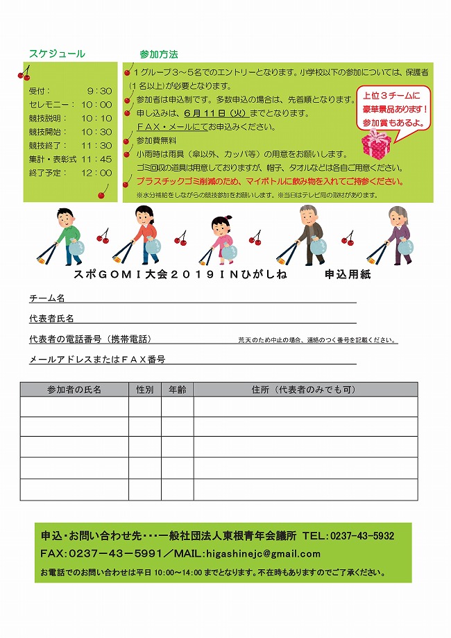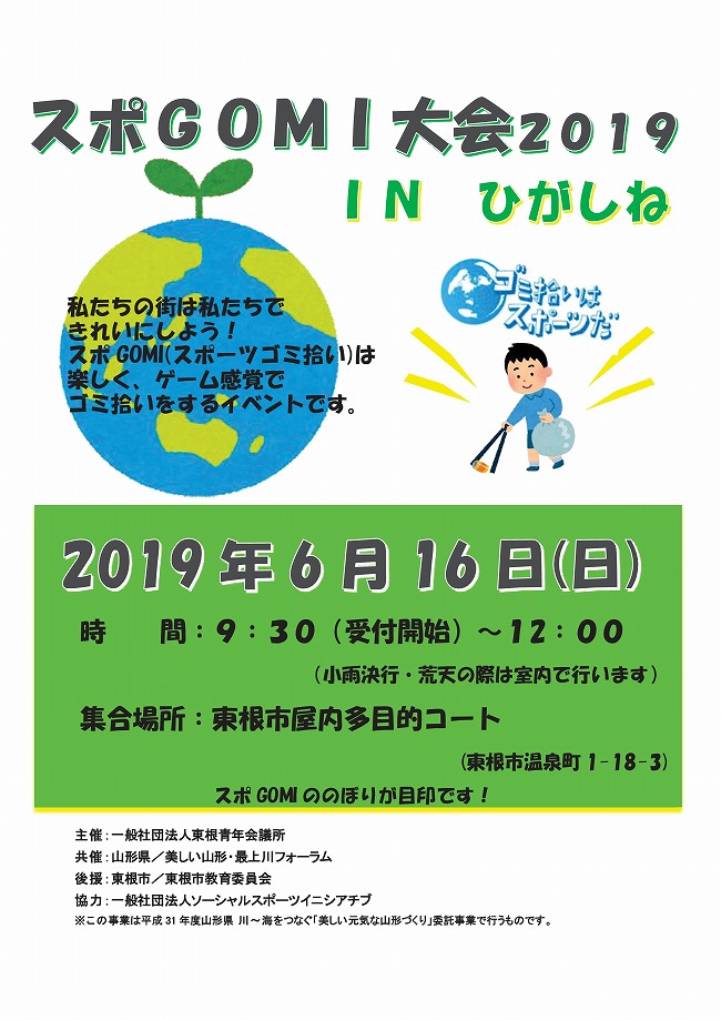 « すべてのイベント このイベントは終了しました。 スポGOMI 大会2019 INひがしね 2019年6月16日09:30 - 12:00 « たけまつり2019 ~地域に眠る資源を楽しく活用するためのワークショップ第一回~ 「遊びり会」に音楽療法を導入 一緒に参加しませんか? » チラシはこちらからダウンロードできます(PDFデータ) + Google カレンダー+ iCal エクスポート 詳細 日付: 2019年6月16日 時間: 09:30 - 12:00 イベントカテゴリー: 団体主催 主催者 一般社団法人 東根青年会議所 電話番号: 0237-43-5932 会場 東根市屋内多目的コート