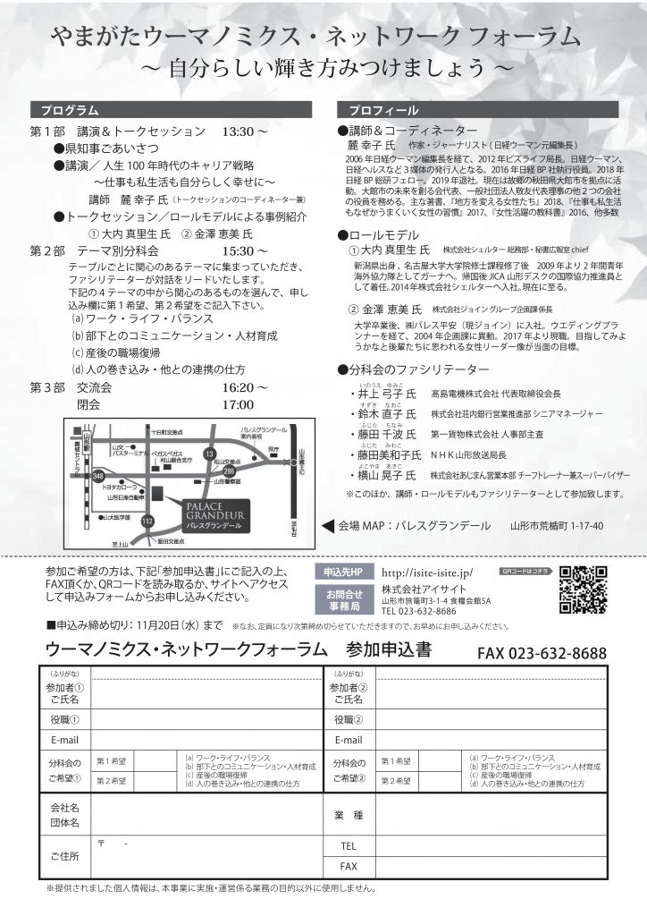 « すべてのイベント このイベントは終了しました。 やまがたウーマノミクス・ネットワークフォーラム 2019年11月28日13:30 - 17:00 « エコクッキング教室 保育現場復帰講座 » チラシはこちらからダウンロードできます(PDFデータ) + Google カレンダー+ iCal エクスポート 詳細 日付: 2019年11月28日 時間: 13:30 - 17:00 イベントカテゴリー: 団体主催 主催者 山形県子育て推進部若者活躍・男女共同参画課 会場 パレスグランデール2階 荒楯町1-17-40 山形市, 山形県 990-2432 日本 + Google マップ