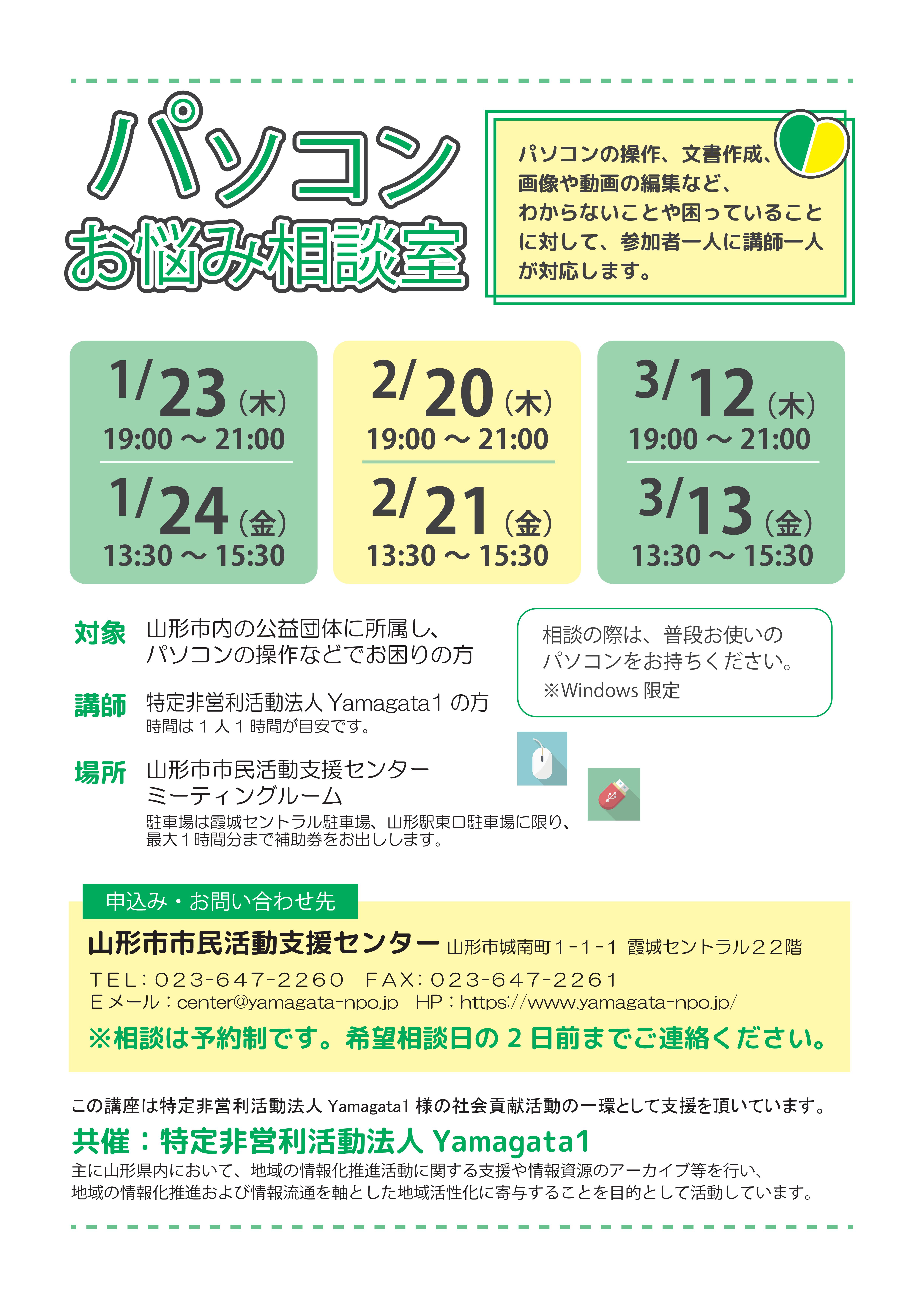 « すべてのイベント このイベントは終了しました。 パソコンお悩み相談室 2020年1月23日19:00 - 21:00 « 働く準備をしよう!~これからスタートするママたちへ~ パソコンの不安を解消しよう! » チラシはこちらからからダウンロードできます(PDF形式) + Google カレンダー+ iCal エクスポート 詳細 日付: 2020年1月23日 時間: 19:00 - 21:00 イベントカテゴリー: センター主催 主催者 山形市市民活動支援センター 電話番号: 023-647-2260 Web サイト: https://www.yamagata-npo.jp/ 会場 山形市市民活動支援センター ミーティングコーナー