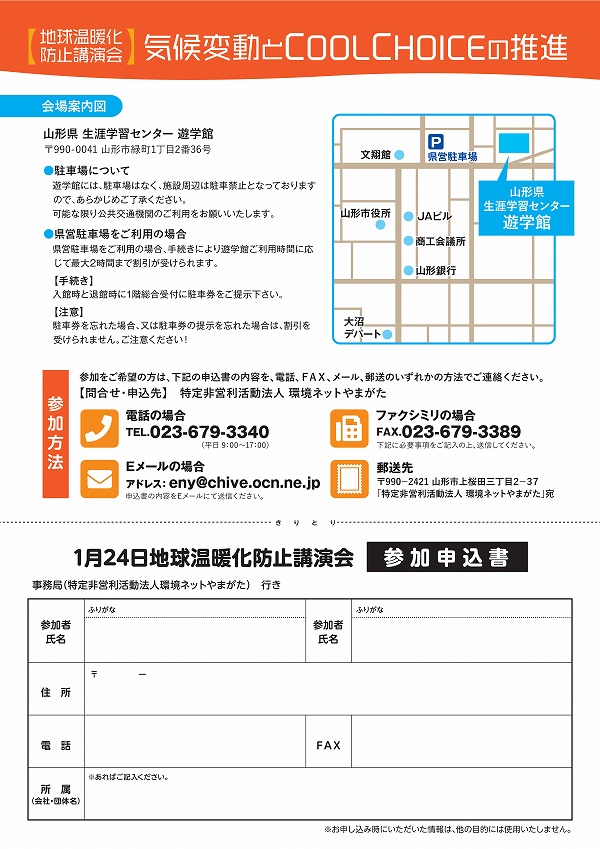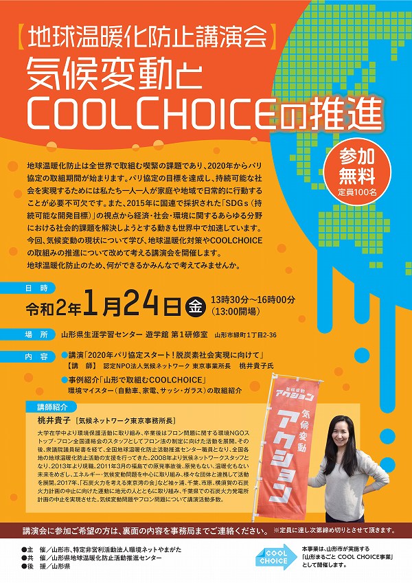 « すべてのイベント このイベントは終了しました。 地球温暖化防止講演会 気候変動とCOOLCHOICEの推進 2020年1月24日13:30 - 16:00 « パソコンお悩み相談室 黒木あるじとひがしね百物語 第二夜 冬怪談 » チラシはこちらからダウンロードできます(PDFデータ) + Google カレンダー+ iCal エクスポート 詳細 日付: 2020年1月24日 時間: 13:30 - 16:00 イベントカテゴリー: 団体主催 主催者 特定非営利活動法人 環境ネットやまがた 電話番号: 023-679-3340 メール: eny@chive.ocn.ne.jp 会場 山形県生涯学習センター 遊学館 第一研修室 山形市緑町1-2-36 + Google マップ