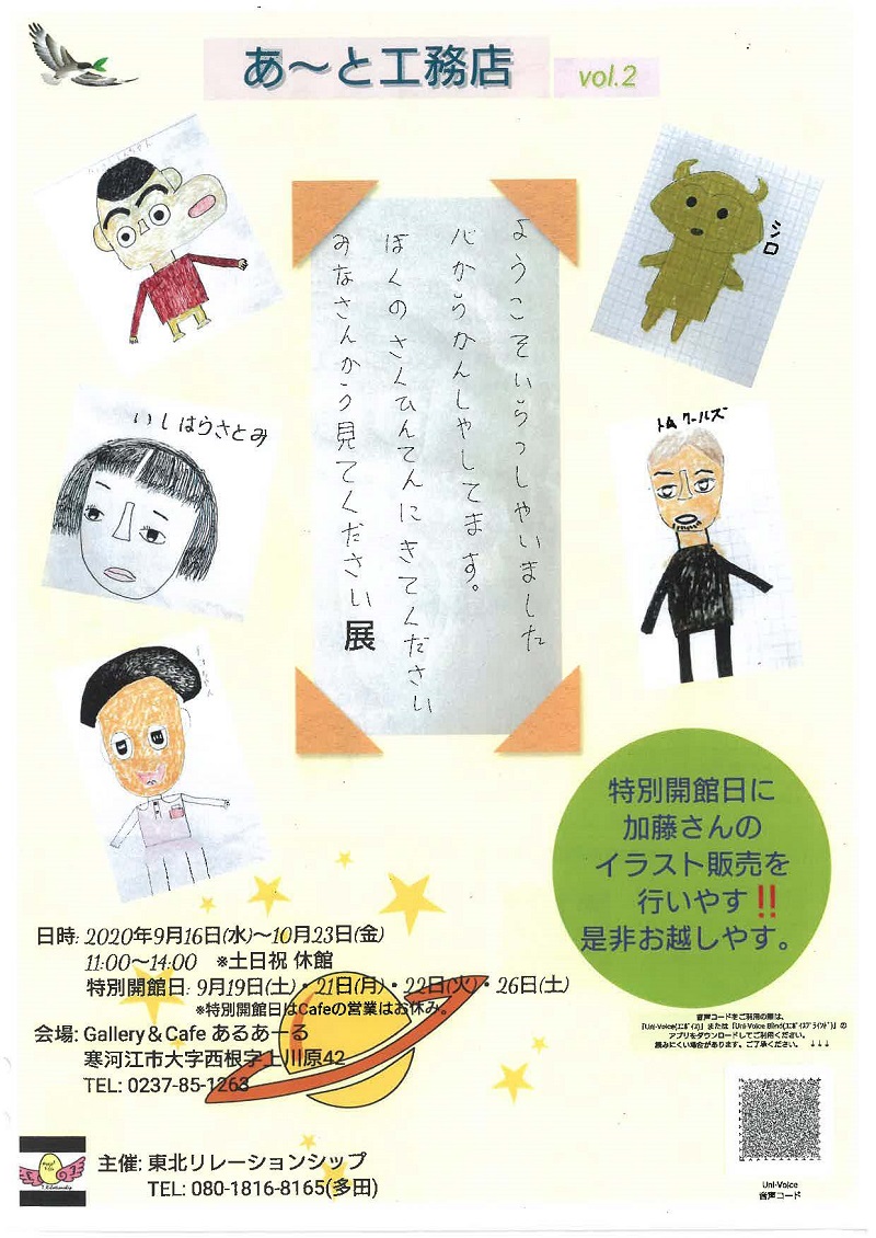 « すべてのイベント このイベントは終了しました。 ようこそいらっしゃいました。心からかんしゃしてます。ぼくのさくひんてんにきてください。みなさんから見てください展 あ~と工務店vol.2 2020年9月28日11:00 - 14:00 « ぷらいずバザー COOL CHOICE&防災展 » チラシはこちらからダウンロードできます(PDFデータ) + Google カレンダー+ iCal エクスポート 詳細 日付: 2020年9月28日 時間: 11:00 - 14:00 イベントカテゴリー: 団体主催 主催者 東北リレーションシップ 会場 Gallery&Cafeあるあーる 大字西根字上川原42番地 寒河江市, 山形県 Japan + Google マップ