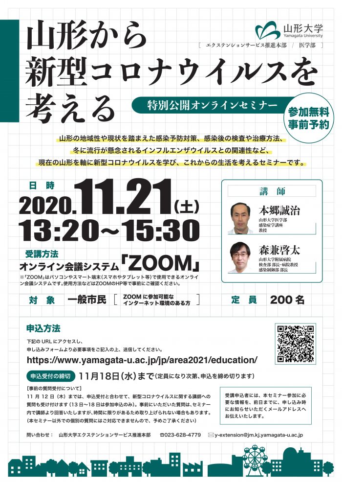 « すべてのイベント このイベントは終了しました。 「山形から新型コロナウイルスを考える」特別公開オンラインセミナー 2020年11月21日13:20 - 15:30 参加無料 « かぜのメリーゴーランド NPO勉強会 ~NPO法人設立編~ » チラシはこちらからダウンロードできます(PDFデータ) + Google カレンダー+ iCal エクスポート 詳細 日付: 2020年11月21日 時間: 13:20 - 15:30 参加費: 参加無料 イベントカテゴリー: 団体主催 Web サイト: https://www.yamagata-u.ac.jp/jp/area2021/education/002/ 主催者 山形大学エクステンションサービス推進本部/医学部(お問い合わせ:山形大学エクステンションサービス推進本部) 電話番号: 023-628-4779 メール: y-extension@jm.kj.yamagata-u.ac.jp