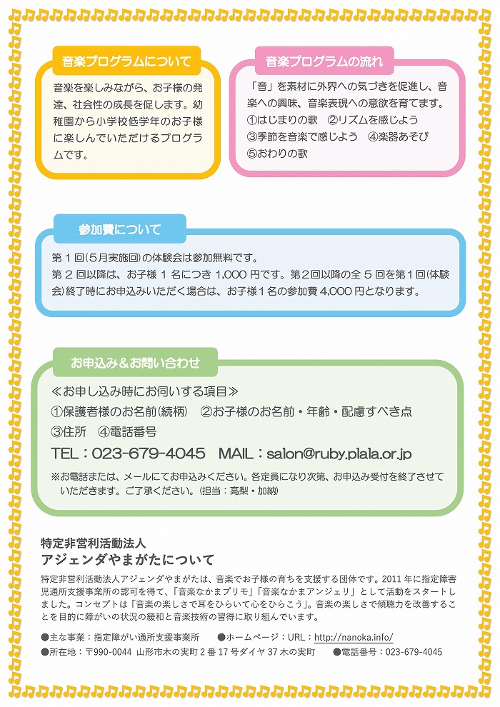 « すべてのイベント このイベントは終了しました。 音楽ひろば ぺんたとおん 2021年6月20日10:20 - 11:15 1,000円 « 野良猫の相談会 ジェンダーと教育 » チラシはこちらからダウンロードできます。 + Google カレンダー+ iCal エクスポート 詳細 日付: 2021年6月20日 時間: 10:20 - 11:15 参加費: 1,000円 イベントカテゴリー: 団体主催 主催者 NPO法人アジェンダやまがた 電話番号: 023-679-4045 Web サイト: http://nanoka.info/ 会場 NPO法人アジェンダやまがた 木の実町2番17号ダイヤ37木の実町 山形市, 山形県 990-0044 日本 + Google マップ 電話番号: 023-679-4045 Web サイト: http://nanoka.info/