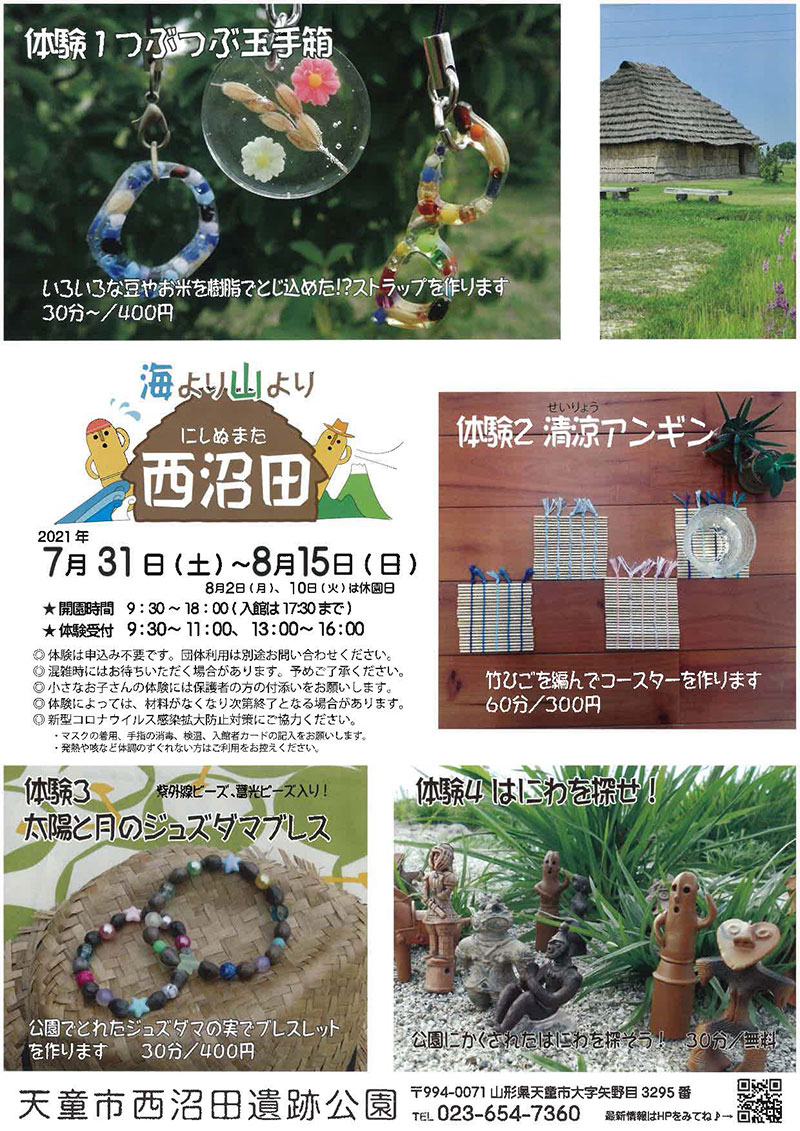 « すべてのイベント このイベントは終了しました。 海より山より西沼田 2021年7月31日09:30 - 2021年8月15日18:00 « センターで気軽にボランティア 演劇ワークショップでコミュニケーション力アップ » ※8月2日(月)、8月10日(火)は休館日 チラシはこちらからダウンロードできます(PDF形式) + Google カレンダー+ iCal エクスポート 詳細 開始: 2021年7月31日 09:30 終了: 2021年8月15日 18:00 イベントカテゴリー: 団体主催 Web サイト: https://nishinumata.or.jp/log/?l=502316 主催者 天童市西沼田遺跡公園 電話番号: 023-654-7360 Web サイト: http://www.nishinumata.or.jp/ 会場 天童市西沼田遺跡公園 山形県天童市大字矢野目3295 + Google マップ 電話番号: 023-654-7360 Web サイト: https://nishinumata.or.jp/