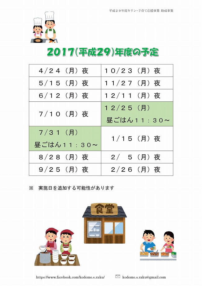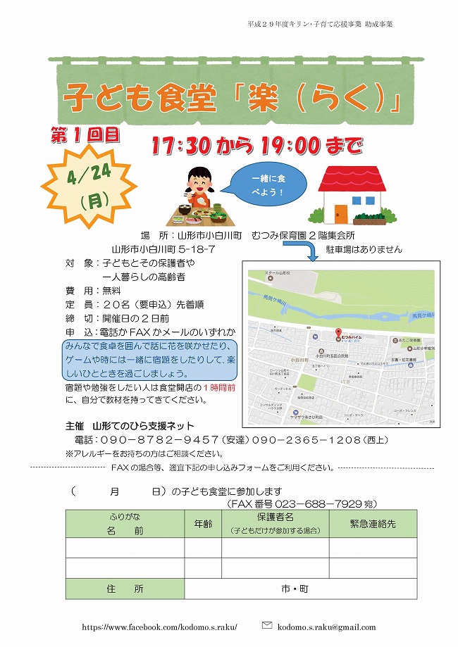 « すべてのイベント このイベントは終了しました。 子ども食堂「楽(らく)」 2018年2月26日 « ScratchとKinectプログラミング教室 体験編 だれもが主人公 子どもを輝かせるとっておきの関わり方を届けます シェア会 » チラシはこちらからダウンロードできます(PDFデータ) + Google カレンダー+ iCal エクスポート 詳細 日付: 2018年2月26日 イベントカテゴリー: 団体主催