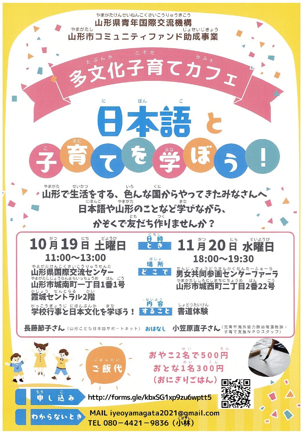 « すべてのイベント このイベントは終了しました。 <多文化子育てカフェ>日本語と子育てを学ぼう! 2024年11月20日18:00 - 19:30 300 « あなたも「とぴボラ」してみませんか? 令和6年度山形県委託事業 外国人雇用に関する事業者向け無料相談会 » チラシはこちらよりダウンロードできます(PDF形式) + Google カレンダー+ iCal エクスポート 詳細 日付: 2024年11月20日 時間: 18:00 - 19:30 参加費: 300 イベントカテゴリー: 団体主催 主催者 公益財団法人山形県国際交流協会(AIRY) 電話番号: 023-647-2560 メール: info@airyamagata.org Web サイト: https://www.airyamagata.org 会場 山形市男女共同参画センター 5階視聴覚室 山形市城西町2-2-22 山形市, + Google マップ