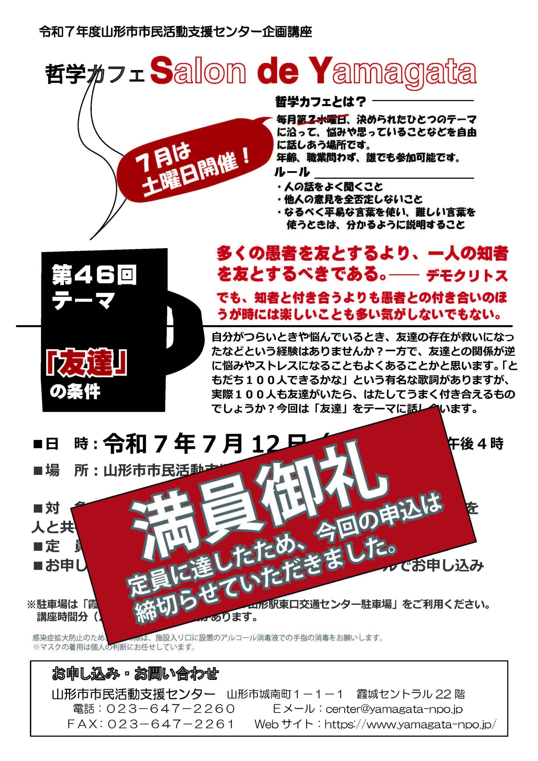 第46回 哲学カフェ~土曜日版~ 「友達」の条件