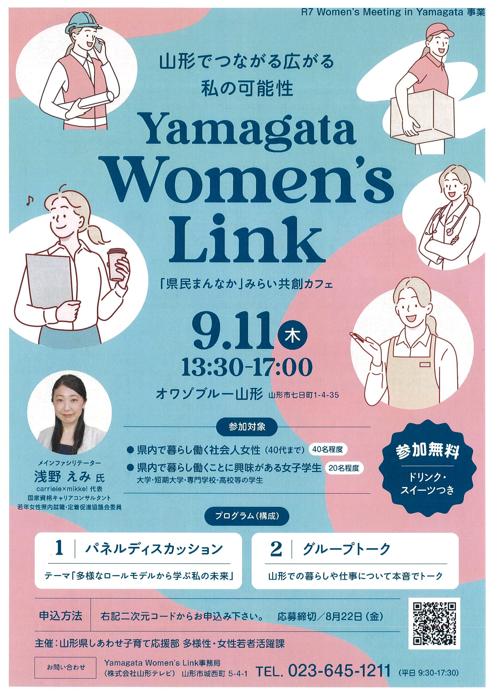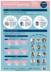 « すべてのイベント このイベントは終了しました。 Yamagata Women’s Link 2025年9月11日13:30 - 17:00 無料 « イクメンからチーム育児へ!~男性のさらなる家事育児参画とイクボスが地域と企業を強くする~ まちなか保健室八日町”さら” » チラシは下記からダウンロードできます。 Yamagata Women’s チラシ(PDF形式) 参加申し込みフォームはこちらから(外部サイトへリンク) + Google カレンダー+ iCal エクスポート 詳細 日付: 2025年9月11日 時間: 13:30 - 17:00 参加費: 無料 イベントカテゴリー: 団体主催 主催者 山形県しあわせ子育て応援部 多様性・女性若者活躍課 電話番号: 023-630-2346 Web サイト: https://www.pref.yamagata.jp/010003/kensei/shoukai/soshikiannai/kosodatesuishin/010003.html 会場 オワゾブルー山形 山形市七日町1-4-35 山形県 + Google マップ