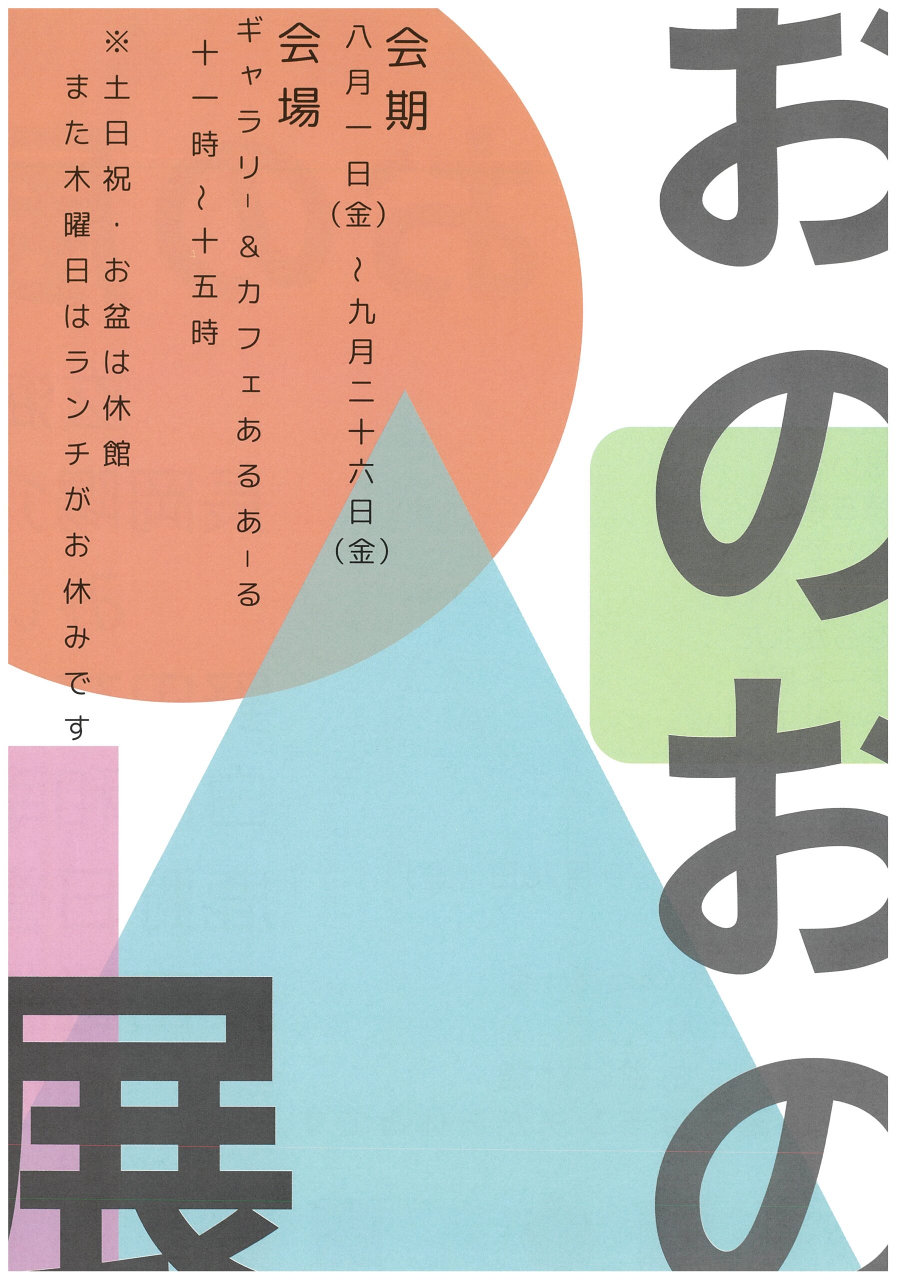 « すべてのイベント このイベントは終了しました。 おのおの展 2025年9月1日11:00 - 2025年9月5日15:00 無料 « 手ぶらでBBQ♪&レジン作り♪~東紅苑で仲間を作ろう~ まちなか保健室七日町 » チラシはこちらから(PDF) + Google カレンダー+ iCal エクスポート 詳細 開始: 2025年9月1日 11:00 終了: 2025年9月5日 15:00 参加費: 無料 イベントカテゴリー: 団体主催 主催者 NPO法人輝色 会場 Gallery&cafeあるあーる 西根上川原42−42 寒河江市, 山形県 991-0003 + Google マップ 電話番号: 0237-85-1263 Web サイト: https://www.facebook.com/p/-Gallerycafe-100064588035948/