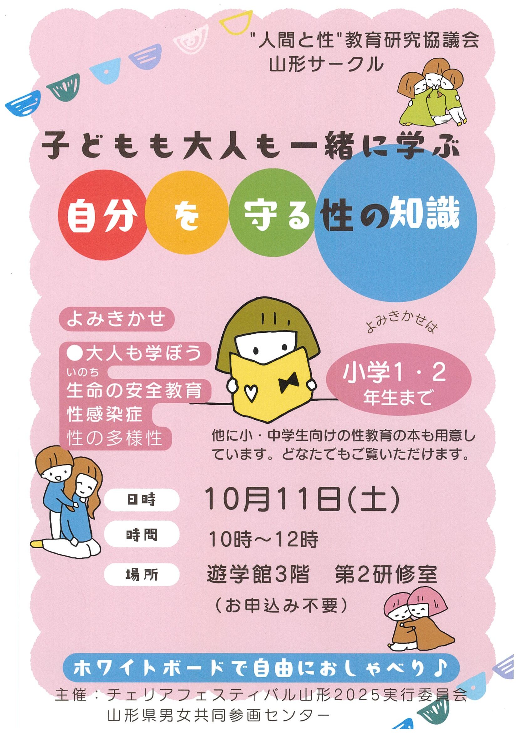 « すべてのイベント このイベントは終了しました。 子どもも大人も一緒に学ぶ自分を守る性の知識 2025年10月11日10:00 - 12:00 無料 « 令和7年度【最上地区】視覚障がい者ICT講習講座のご案内 チェリアフェスティバル山形2025 » チラシはこちら⇒自分を守る性の知識(PDF形式) + Google カレンダー+ iCal エクスポート 詳細 日付: 2025年10月11日 時間: 10:00 - 12:00 参加費: 無料 イベントカテゴリー: 団体主催 主催者 (一社)”人間と性”教育研究協議会山形サークル 電話番号: 0233-22-5588 会場 遊学館 3階 第2研修室 山形市緑町1丁目2-36 山形市, 山形県 990-0041 日本 + Google マップ 電話番号: 023-625-6411 Web サイト: https://www.gakushubunka.jp/yugakukan/