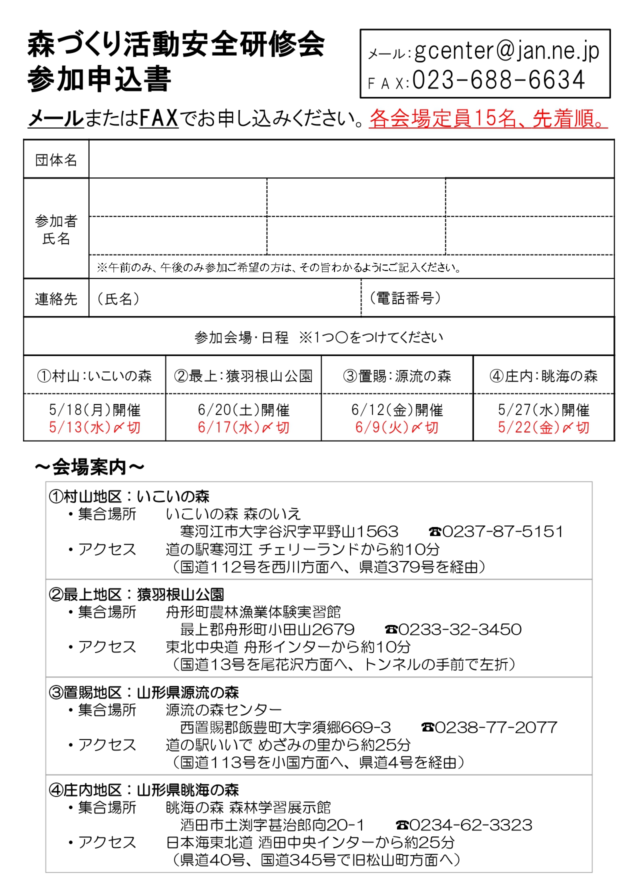 « すべてのイベント 森づくり活動安全研修会(最上地区) 6月 20日09:30 - 15:00 無料 « あなたも「とぴボラ」してみませんか? 市民活動のためのはじめてのAI ~正しく活用するための基礎知識~ » チラシはこちらから(PDF) + Google カレンダー+ iCal エクスポート 詳細 日付: 6月 20日 時間: 09:30 - 15:00 参加費: 無料 イベントカテゴリー: 団体主催 主催者 (公財)やまがた森林と緑の推進機構 電話番号: 023-688-6633 メール: gcenter@jan.ne.jp Web サイト: http://ymidori.or.jp/index.html 会場 猿羽根山公園 小田山2679 舟形町, 山形県 日本 + Google マップ